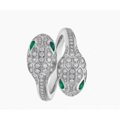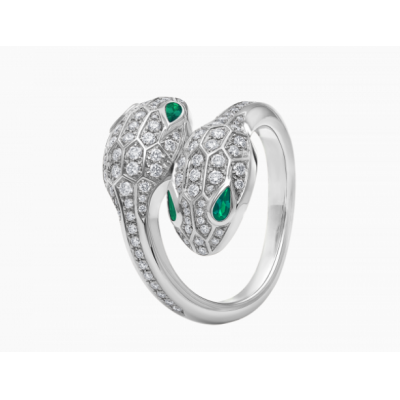 Bvlgari宝格丽Serpenti系列标志之作的灵感源自神秘灵蛇褪去蛇皮以积极求变并重获力量的蜕变特质,自1948年以来便始终是无尽更迭的贴切象征。Serpenti系列白色18K金戒指,悉心镶嵌熠熠生辉的密镶钻石和祖母绿蛇眼,巧妙融合卓越工艺与非凡佩戴体验,尽显难以抵挡的迷人风采与历久弥新的隽永美感。作为力量与自信的不竭源泉,始终与时俱进。